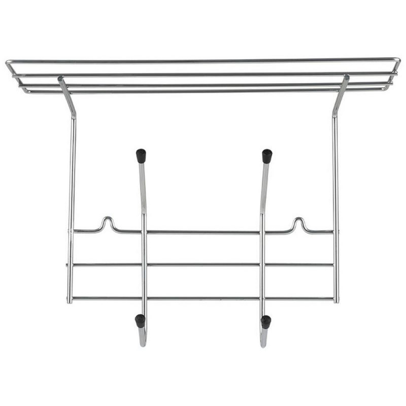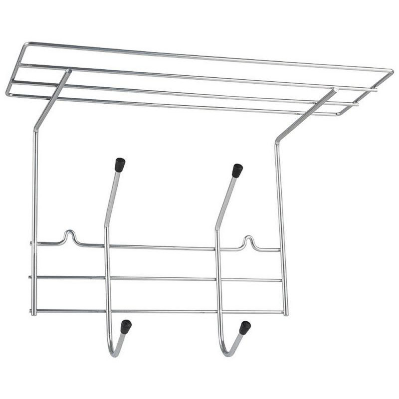34х19.5х23.5см, сталь/пластик, порошковая краска, 2 крючка, с полкой, нагрузка 20кг, цвет хром