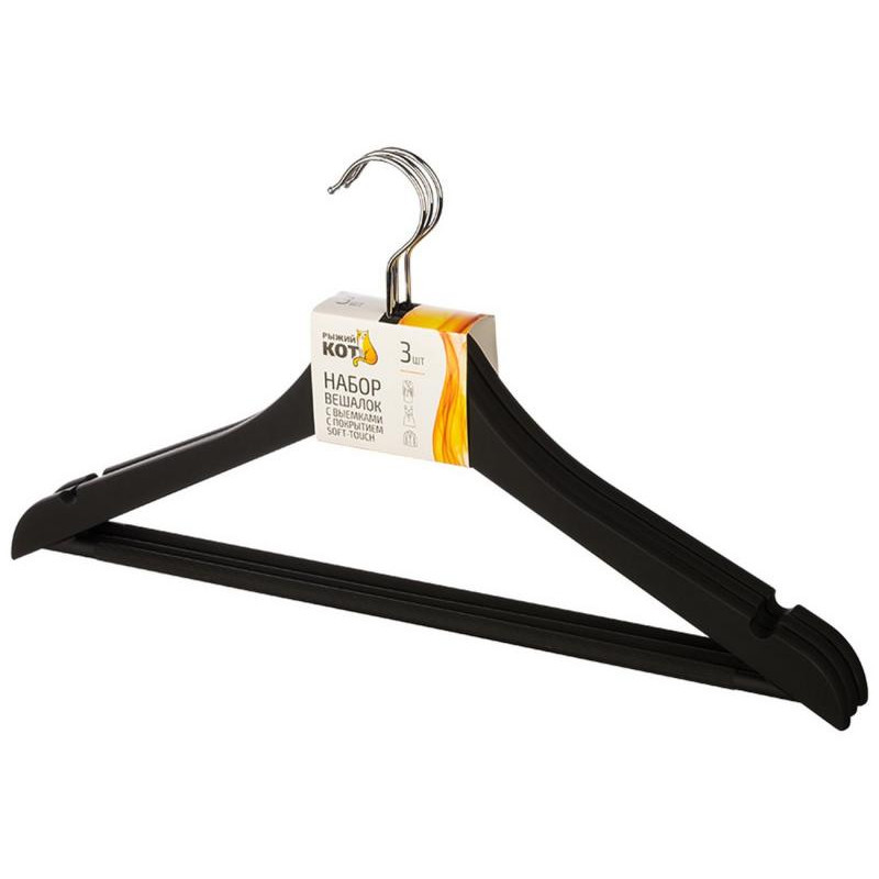 Набор вешалок пластиковых c выемками с покрытием soft (3шт) цвет черный РЫЖИЙ КОТ 107881