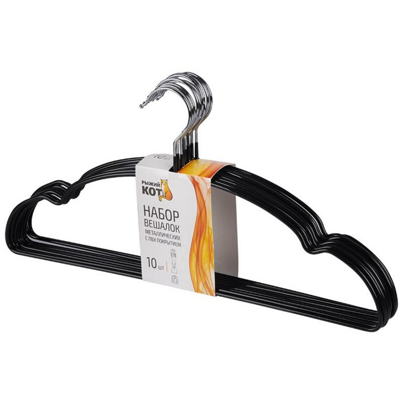 Набор вешалок металлических с ПВХ покрытием (10шт) цвет черный РЫЖИЙ КОТ 107903