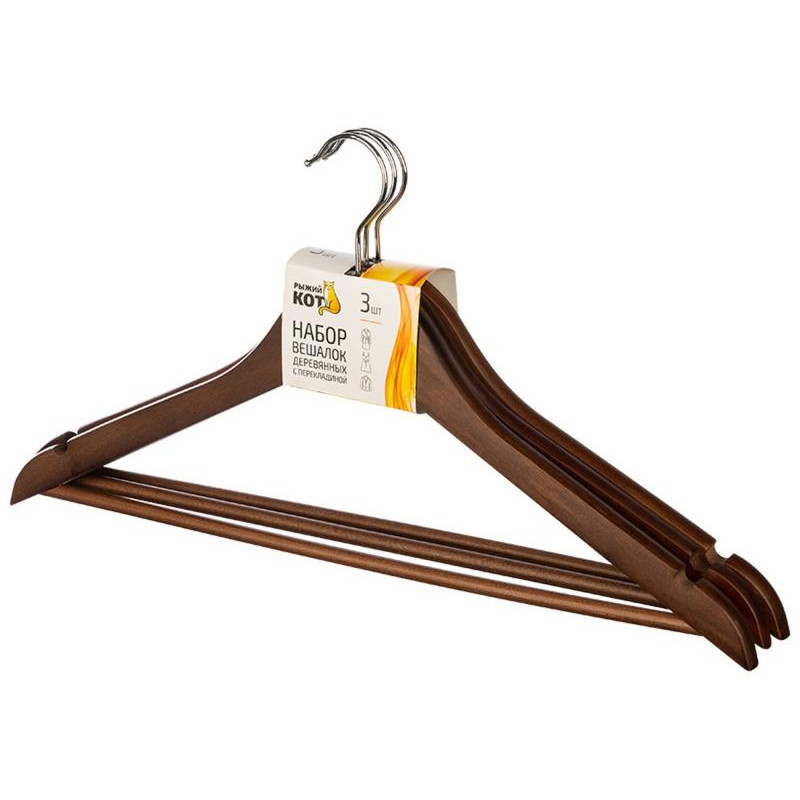 Набор вешалок деревянных с перекладиной (3шт) цвет темно-коричневый РЫЖИЙ КОТ 107911
