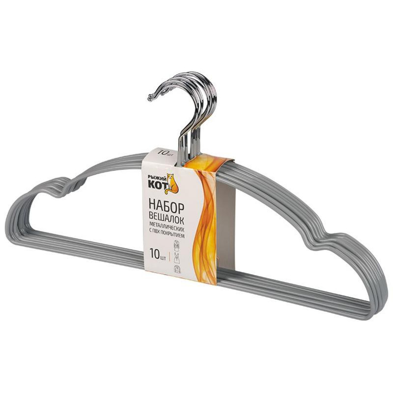 Набор вешалок металлических с ПВХ покрытием (10шт) цвет серый РЫЖИЙ КОТ 107916