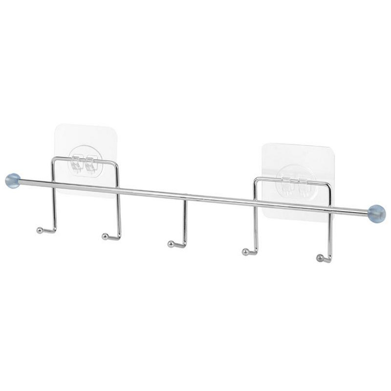 32.5х3.5х4.5см, хромированный металл/пластик/ПВХ, крепление: 2 крючка на самоклеящейся основе