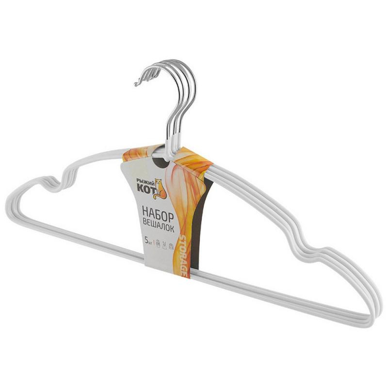 Набор вешалок с ПВХ покрытием 5шт цвет белый РЫЖИЙ КОТ 311380