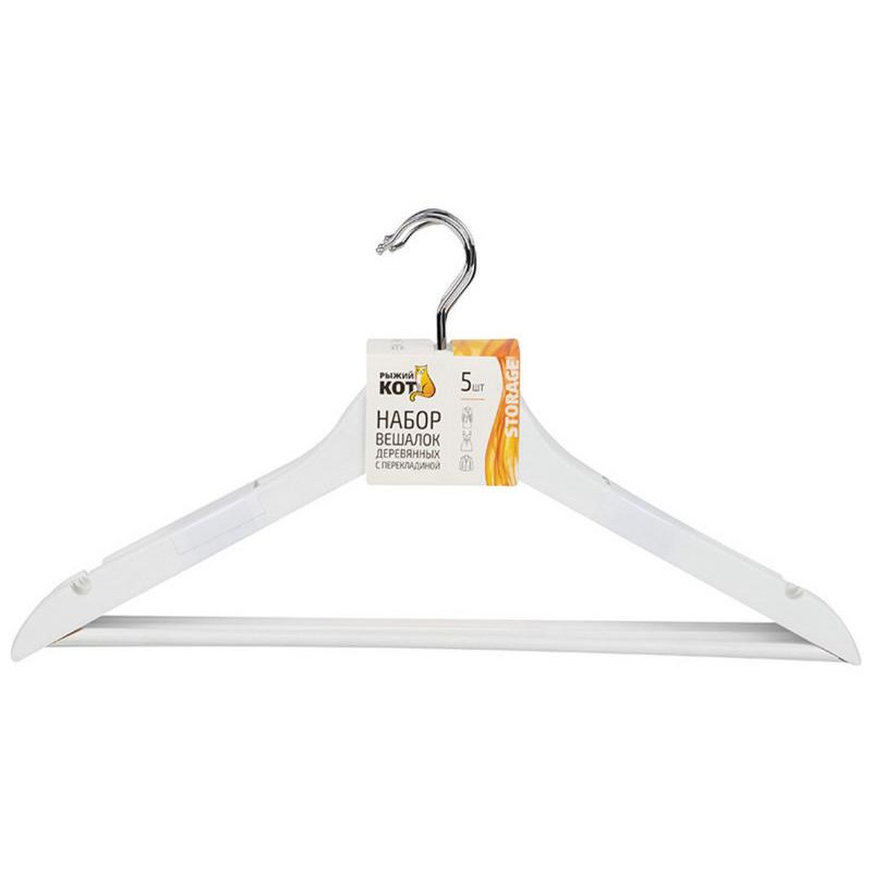 Набор вешалок деревянных с перекладиной (5шт) цвет белый РЫЖИЙ КОТ 311382