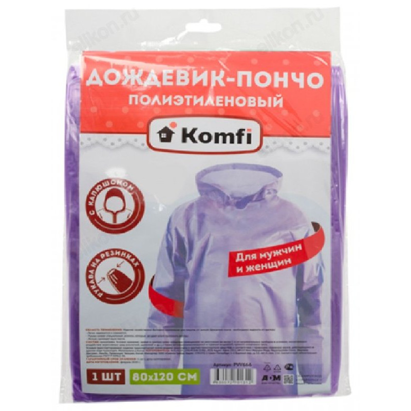 Дождевик-пончо PVV666 полиэтилен с рукавами фиолетовый
