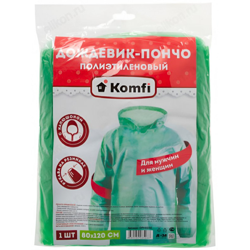Дождевик-пончо зеленого цвета из полиэтилена.