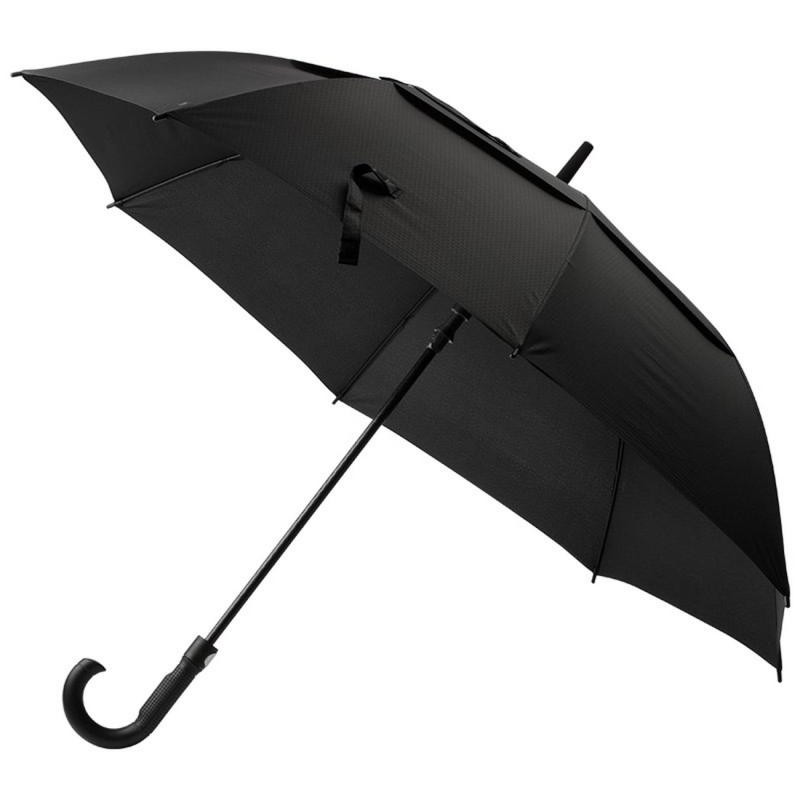 d120см, в сложенном виде длина 96см, полиэстер/фибергласс/металл/пластик, 8 фибергласовых спиц, система антиветер, двойной купол, черный