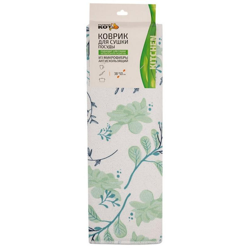Коврик для сушки посуды из микрофибры антискользящий, 38х50см РЫЖИЙ КОТ 105615