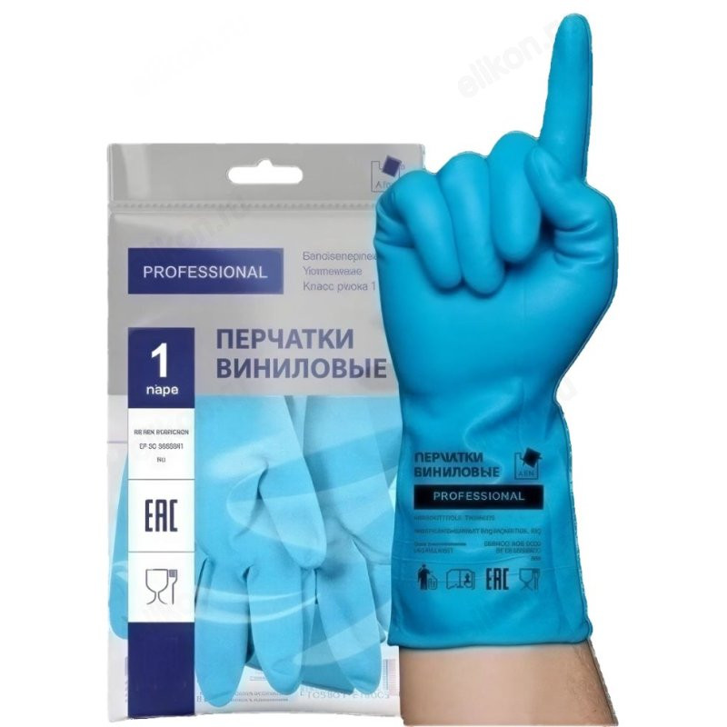 Перчатки виниловые хозяйственные V7603LB ТР ТС (L) голубой