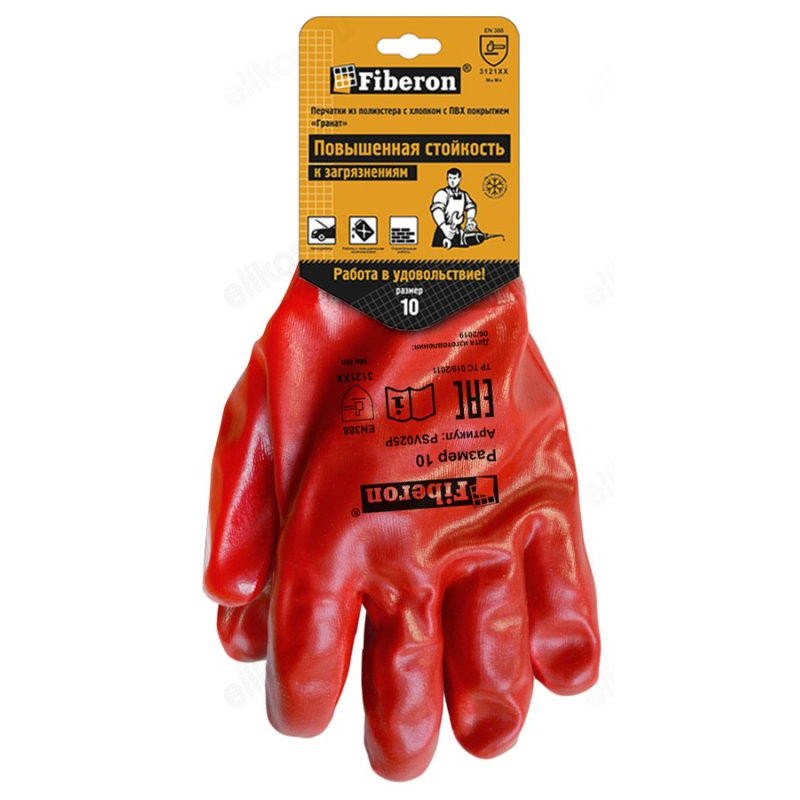 Перчатки полиэстер, х/б PSV025P с ПВХ покрытием, полный облив, Fiberon, 10 (XL) , 120/10