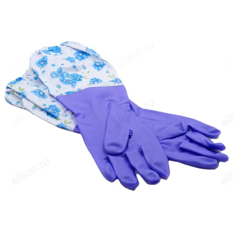 Перчатки хозяйственные удлиненные цветочки Р-4 /200