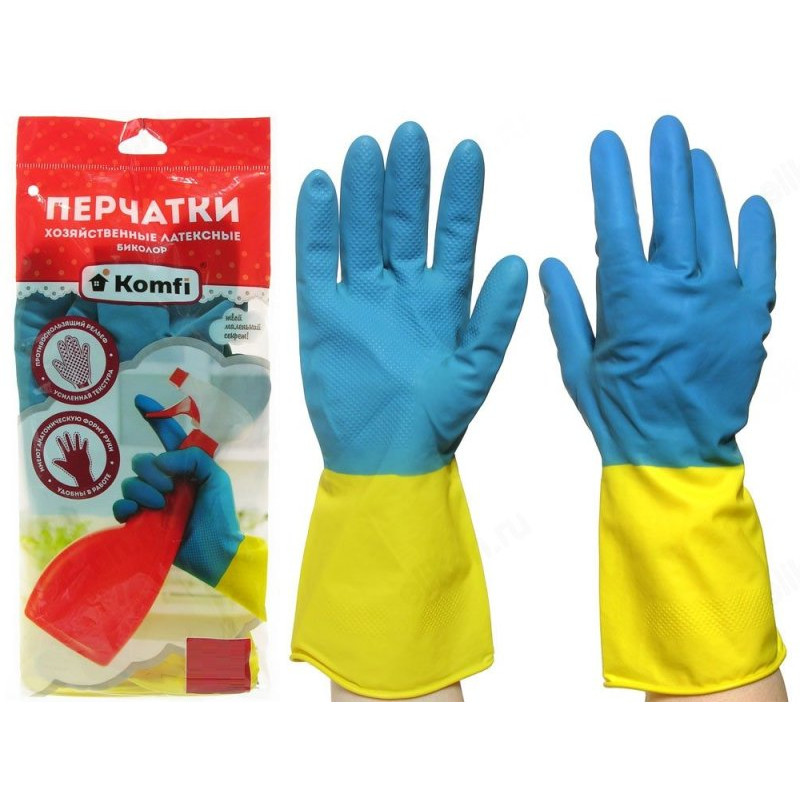 Перчатки латексные хозяйственные БИКОЛОР р-р S синий+желтый BICOLO1