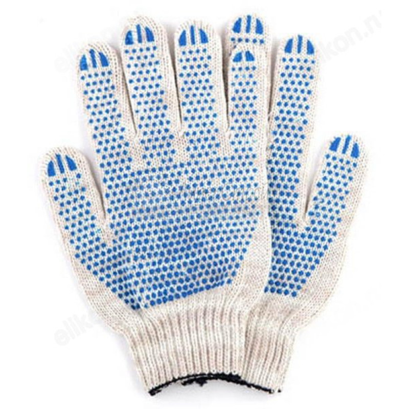 Рабочие перчатки с ПВХ изготовлены из натурального хлопка, а точечки на контактной поверхности из специального полимерного материала.