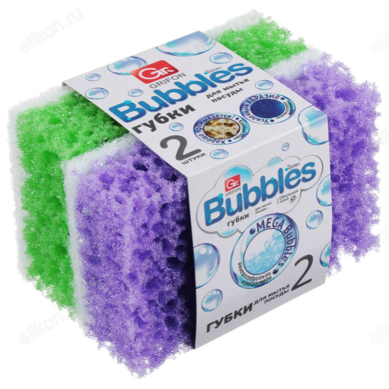 Губка для мытья посуды Grifon изготовлена из поролона, с мягким абразивным слоем.
