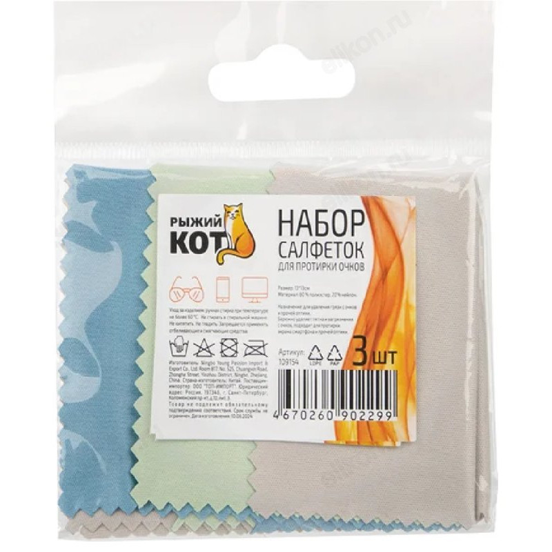 Салфетка для протирки очков Рыжий кот 109154 3шт