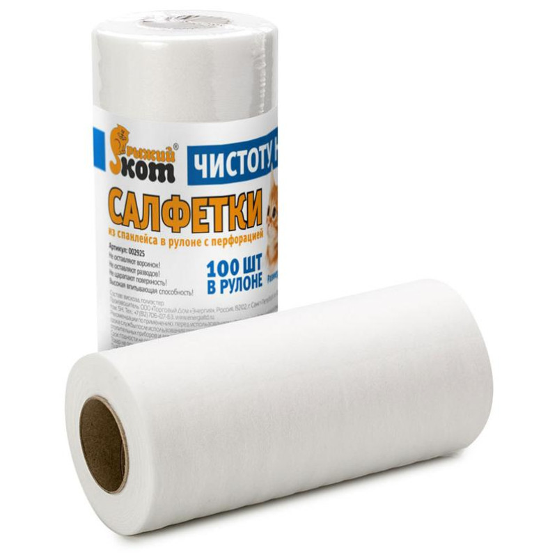 Салфетки из спанлейса в рулоне с перфорацией , 25х30см, 100шт РЫЖИЙ КОТ 002925