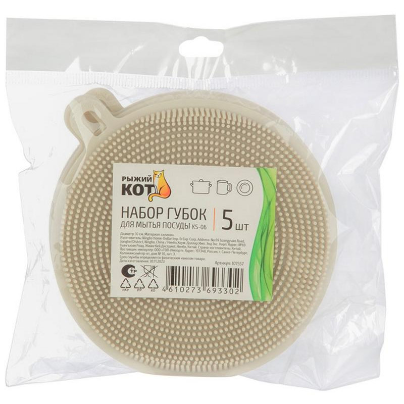Набор губок для мытья посуды KS-06 (5шт) РЫЖИЙ КОТ 107557