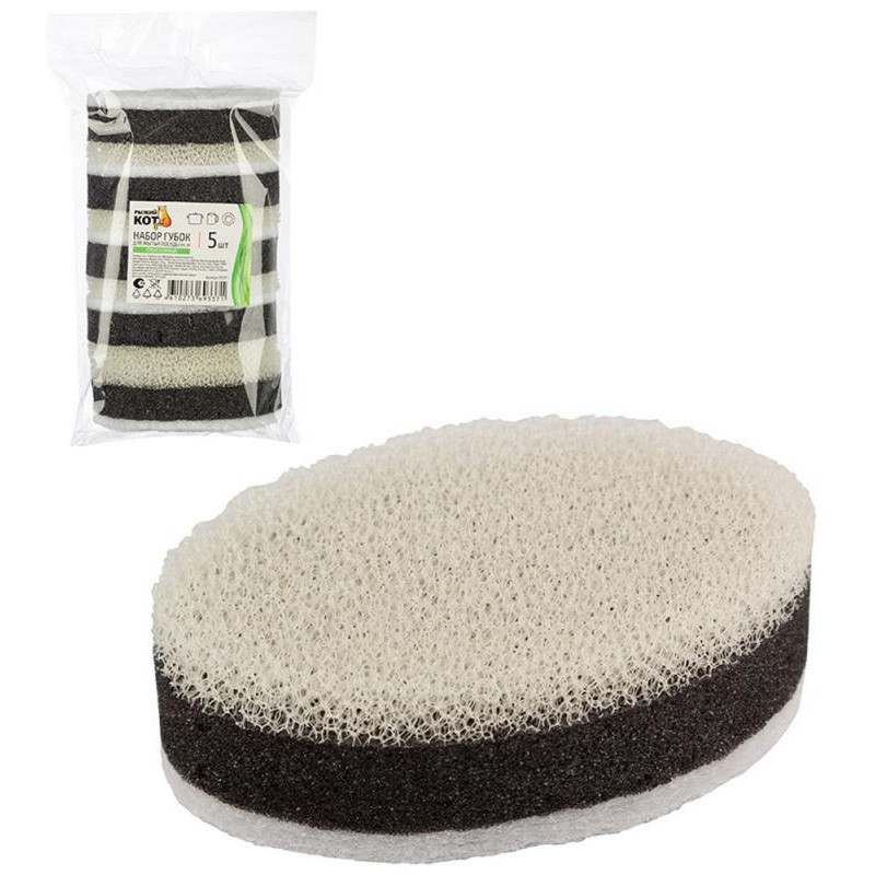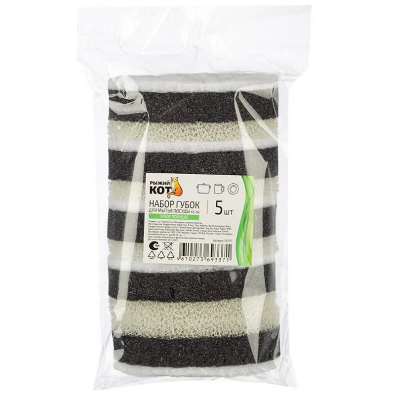 Набор губок для мытья посуды трехслойных KS-09 белый/черный (5шт) РЫЖИЙ КОТ 107571