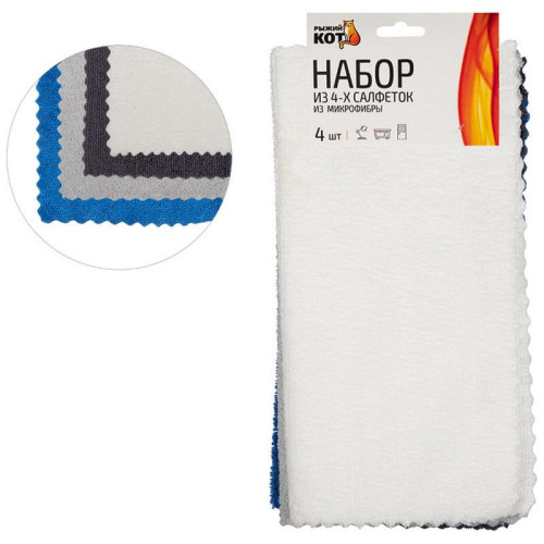 Набор салфеток из микрофибры 30х30см (4шт) РЫЖИЙ КОТ 108920