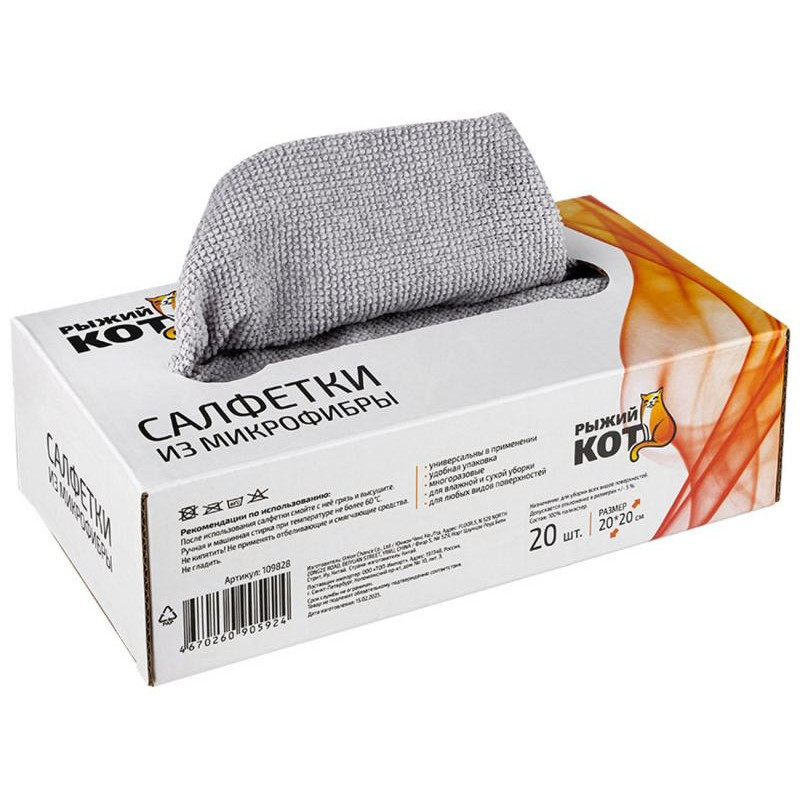 Салфетки из микрофибры в коробке 20х20см, 20шт РЫЖИЙ КОТ 109828