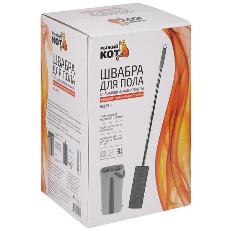 Швабра для пола Helper с насадкой из микрофибры и ведром с механизмом отжима РЫЖИЙ КОТ 109965