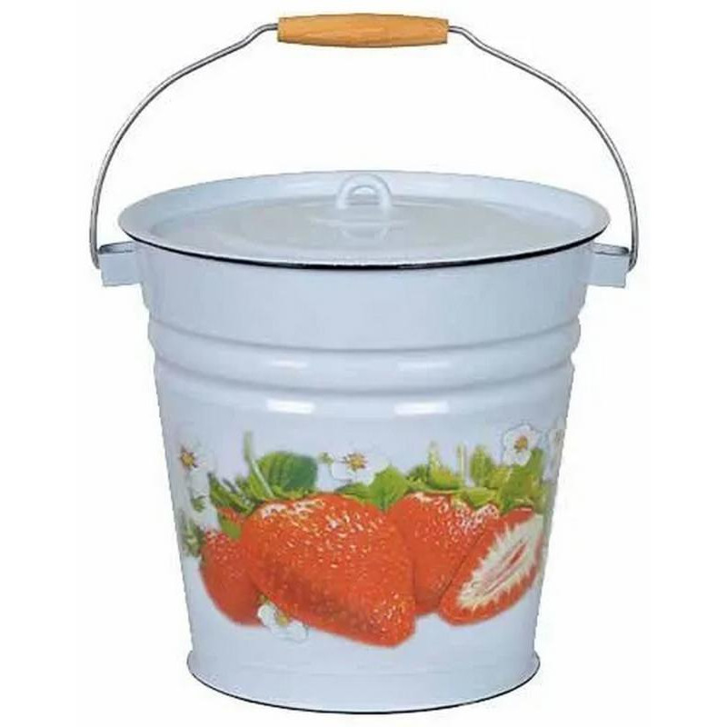 Ведро эмал. 12л крышкой Клубника садовая серо-голубое ЭМАЛЬ (СИБ.ТОВАРЫ) С1224вСГ59