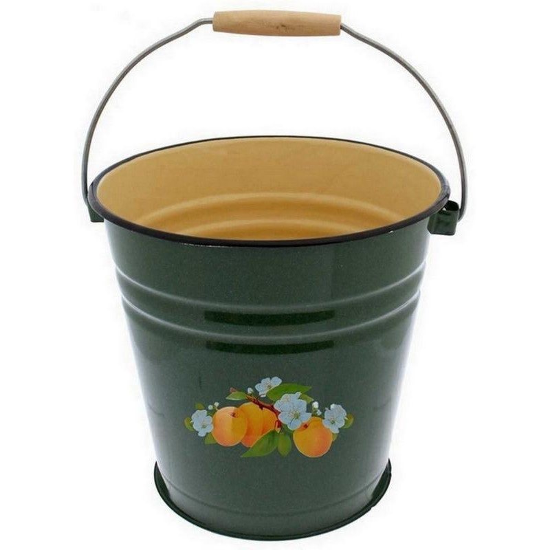 Ведро эмал. 12л с крышкой Абрикос зеленый рябчик/палевое ЭМАЛЬ (СИБ.ТОВАРЫ) С1224зП76