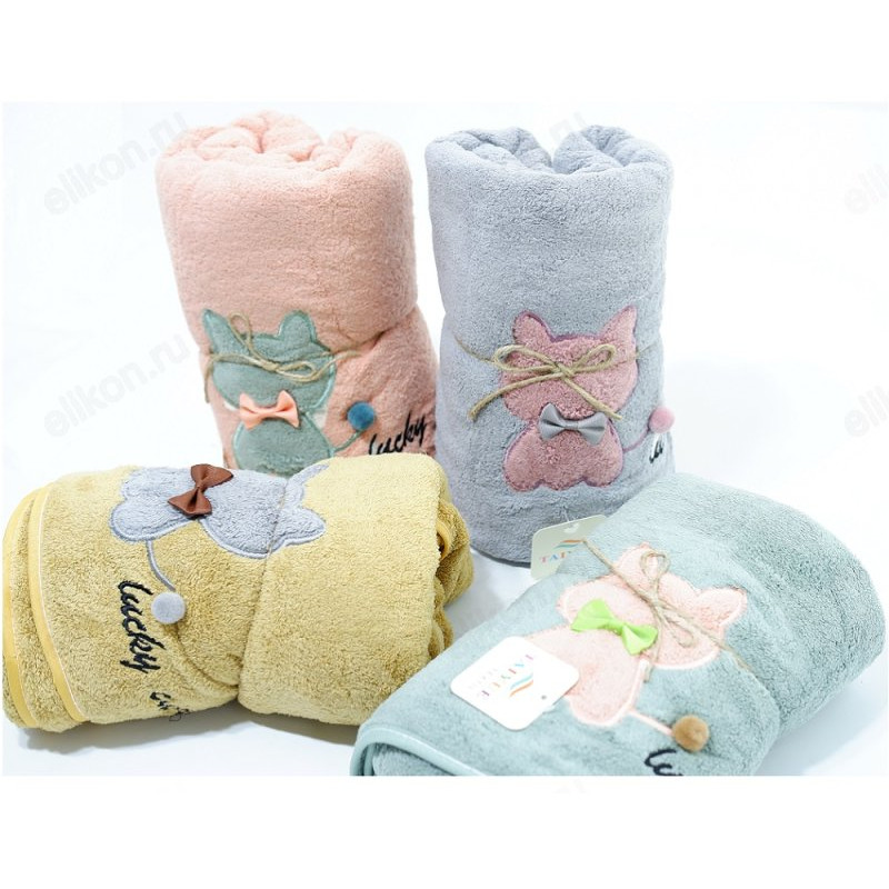 Полотенце микрофибра 50*90см лицо/руки Кот с бабочкой (5шт/уп)