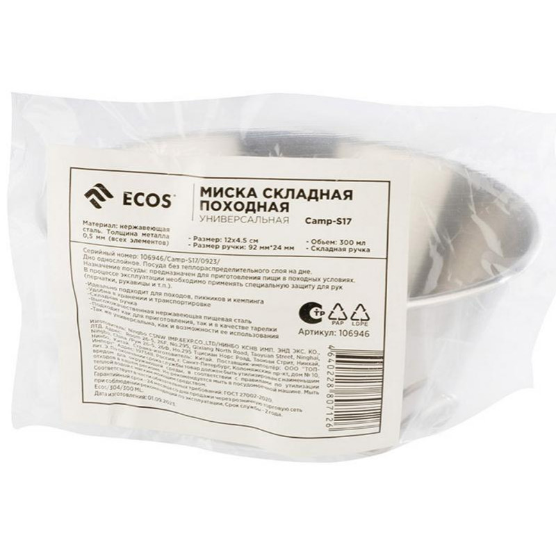 Миска складная походная ECOS Camp-S17 из нерж.стали PARK ECOS 106946