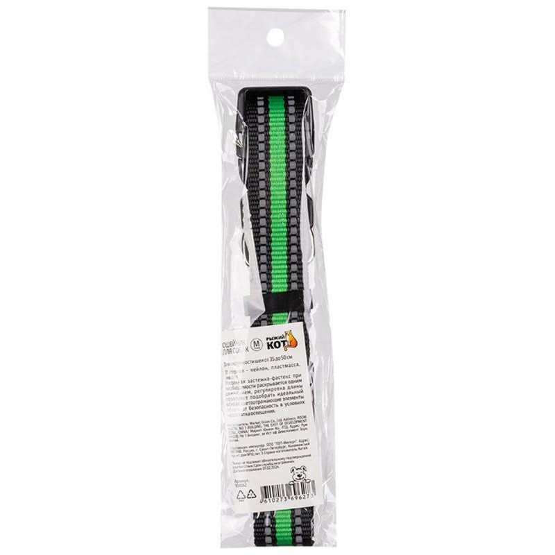 Ошейник для собаки со светоотражающим элементом (до 500мм) РЫЖИЙ КОТ 108062