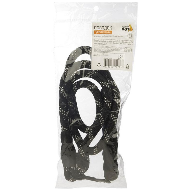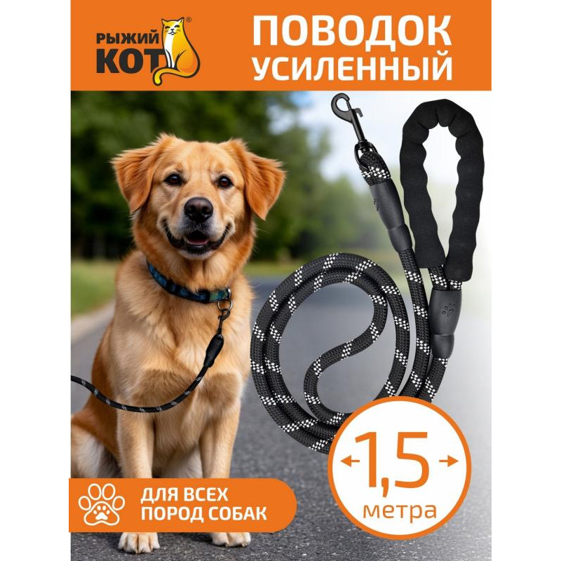 Поводок усиленный, нейлон, 1,5м РЫЖИЙ КОТ 110070