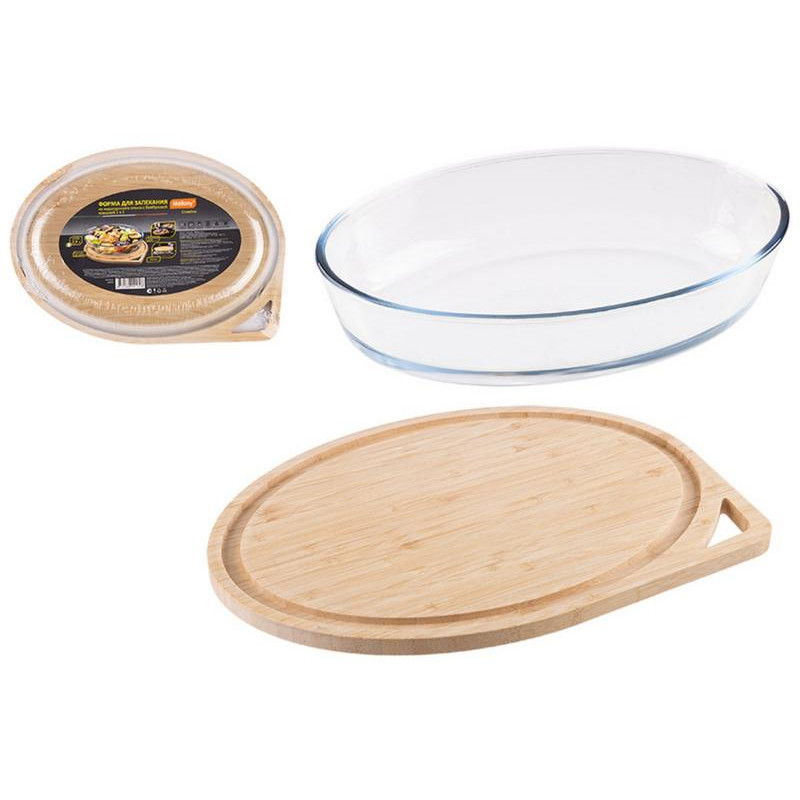 боросиликатное стекло/бамбук, 2,4л, бамбук. крышка 3 в 1, овальная, 32,2x23,2x7,1см
