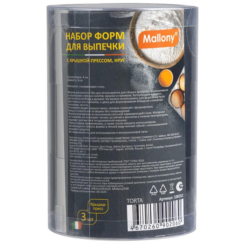 Набор форм для выпечки TORTA круг (3шт) MALLONY 108352