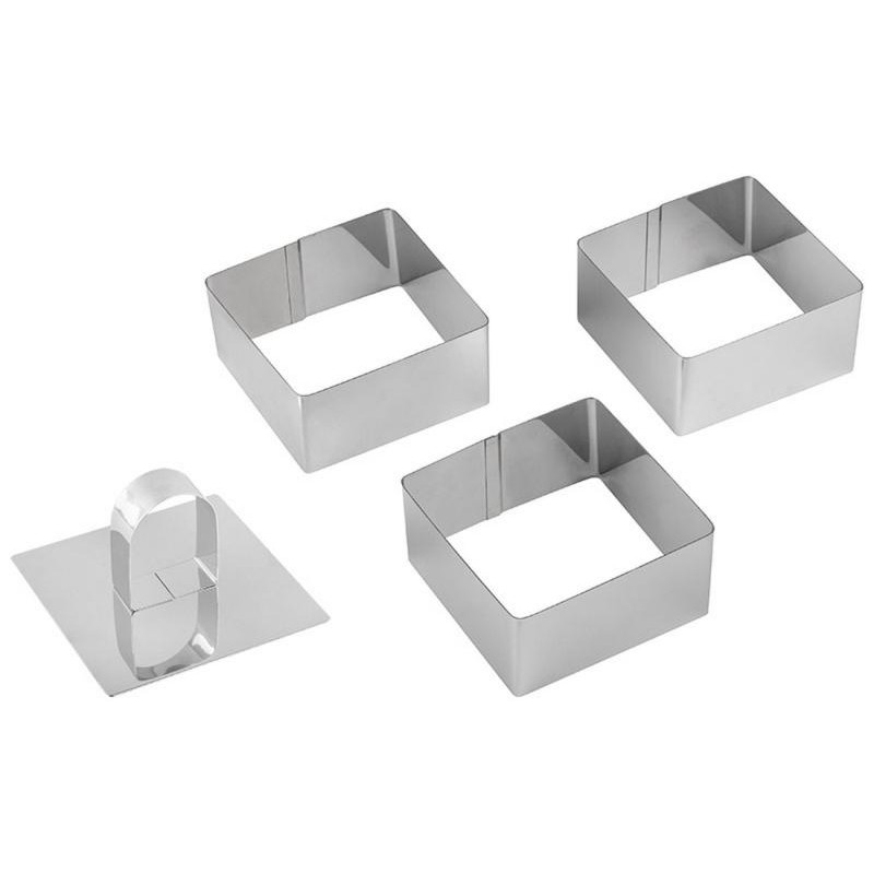 3шт, квадрат, высота 4см, 8х8см, крышка-пресс, нержавеющая сталь