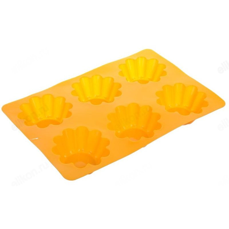 Форма для выпечки из силикона, разделенная на 6 круглых ячеек с ровным гладким дном и гофрированной стенкой, предназначена для выпечки изделий из теста в духовых шкафах.