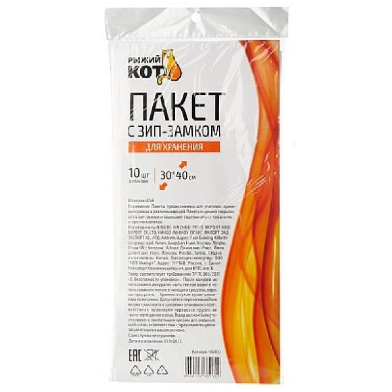 Пакет с ЗИП-замком Рыжий кот 30х40см 106903