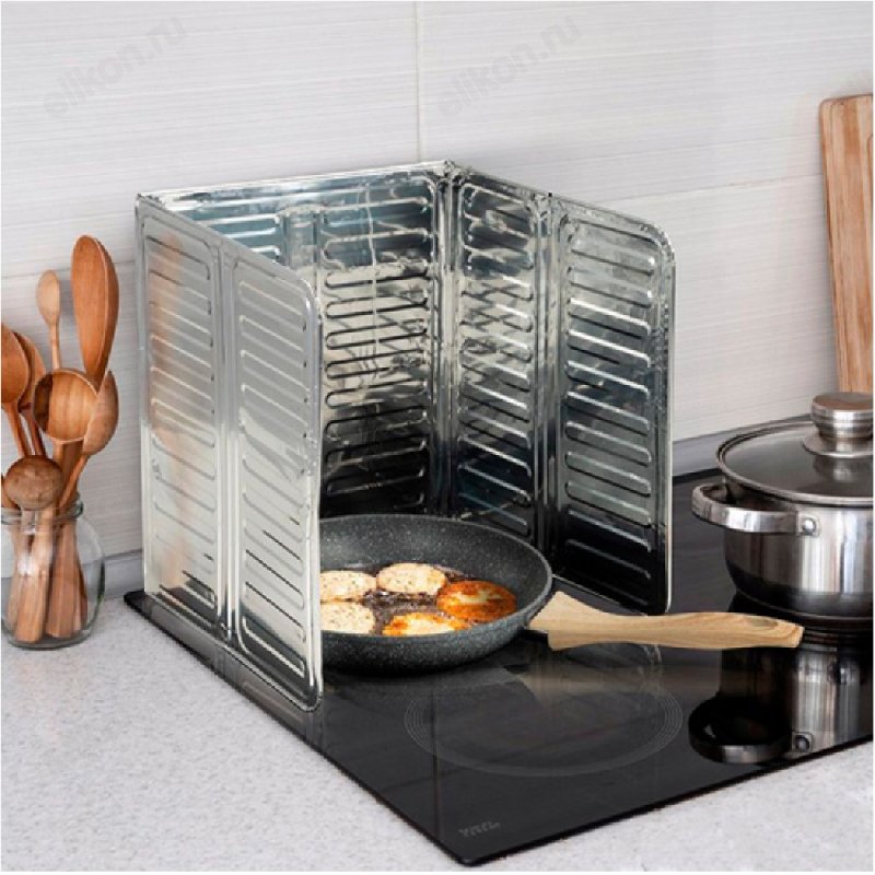 Защитный экран для плиты - отличное решение, как спастись от брызг во время приготовения пищи.Идеальная защита кухонного фартука от грязи, а пластиковых элементов кухни, находящихся рядом с плитой, от деформации.Защитный экран легко мыть, он может быть использован многократно. В сложенном виде занимат минимум места.