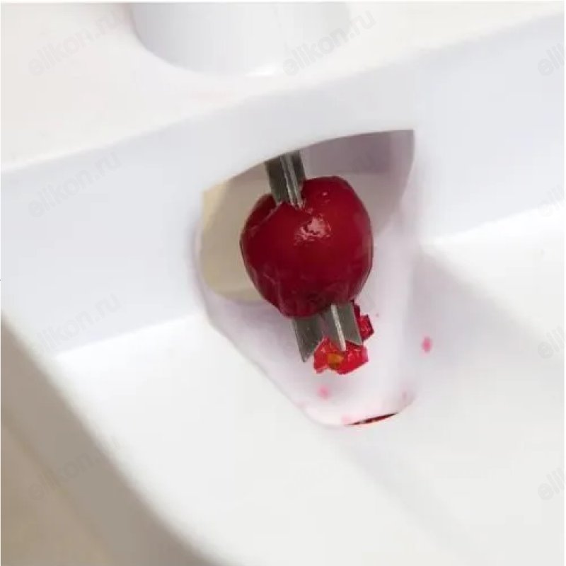 который в процессе чистки ягод не окрашивается в красный цвет от вишни и легко моется, присоска на дне сделана из резины.