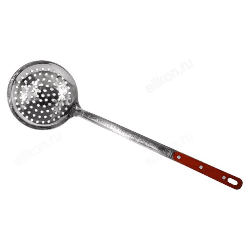 Шумовка для казана из нержавеющей стали с деревянной ручкой сделает процесс приготовления приятнее и удобнее.