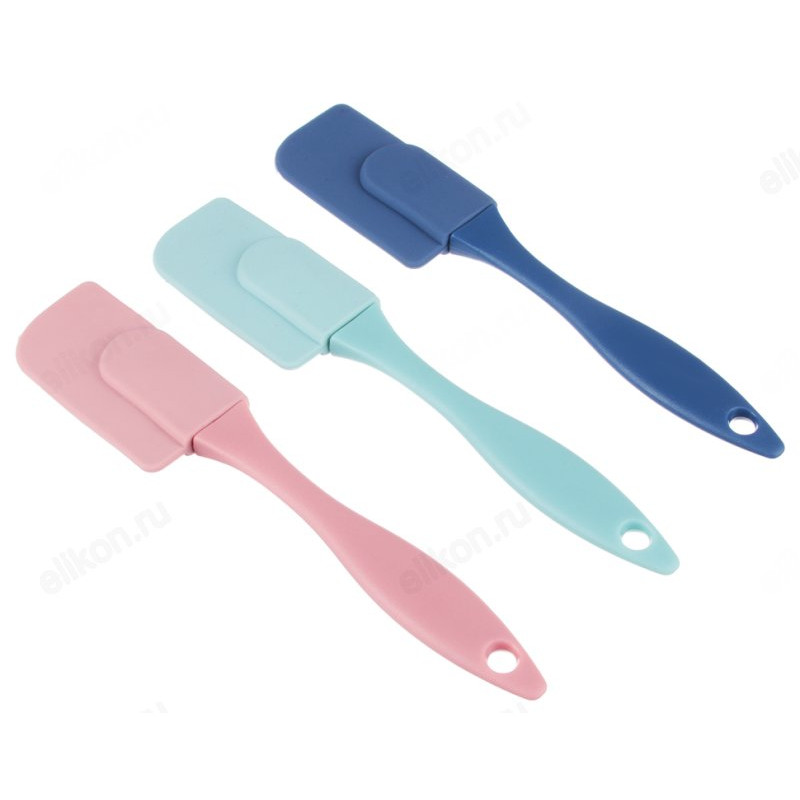 Лопатка из силикона с пластиковой ручкой для выравнивания теста в форме для выпечки.