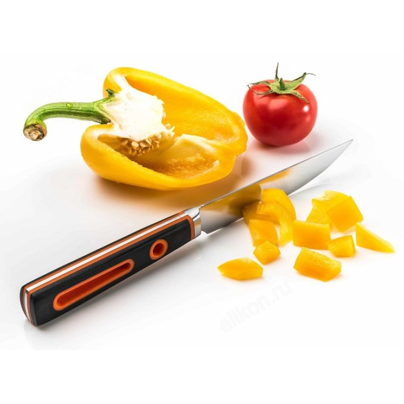 Нож подходит для мелкой нарезки овощей, фруктов и зелени.