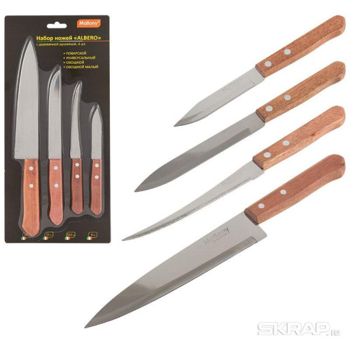 Набор ножей с деревянной рукояткой ALBERO 4шт MALLONY 007092