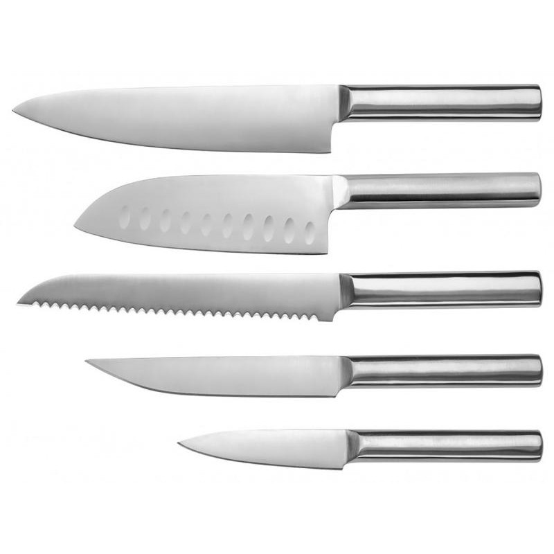 6 предметов, сталь, 5 ножей, подставка каучуковое дерево, рекомендуется ручная мойка