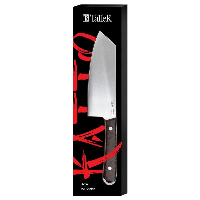 Лезвие-длина 17.5см, толщина лезвия 2.8мм, материал лезвия-нерж.сталь, ручка-дерево, рекомендуется ручная мойка, упаковка-цветная коробка