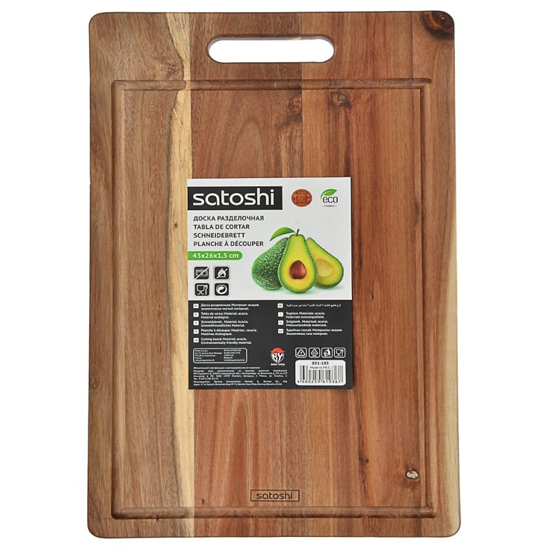 Разделочная доска из акации Satoshi устойчива к царапинам и порезам ножа. Не поглощает запахи, что очень актуально, когда вы нарезаете чеснок и лук или разделываете рыбу. Не боится влаги. Не поддается деформации и растрескиванию. Прекрасная помощница на кухне. 5 причин купить разделочную доску из дерева акации: • устойчивость к механическим нагрузкам • обладает водоотталкивающими свойствами • не рассыхается, не покрывается трещинами • не тупит ножи • не впитывает ароматы продуктов.