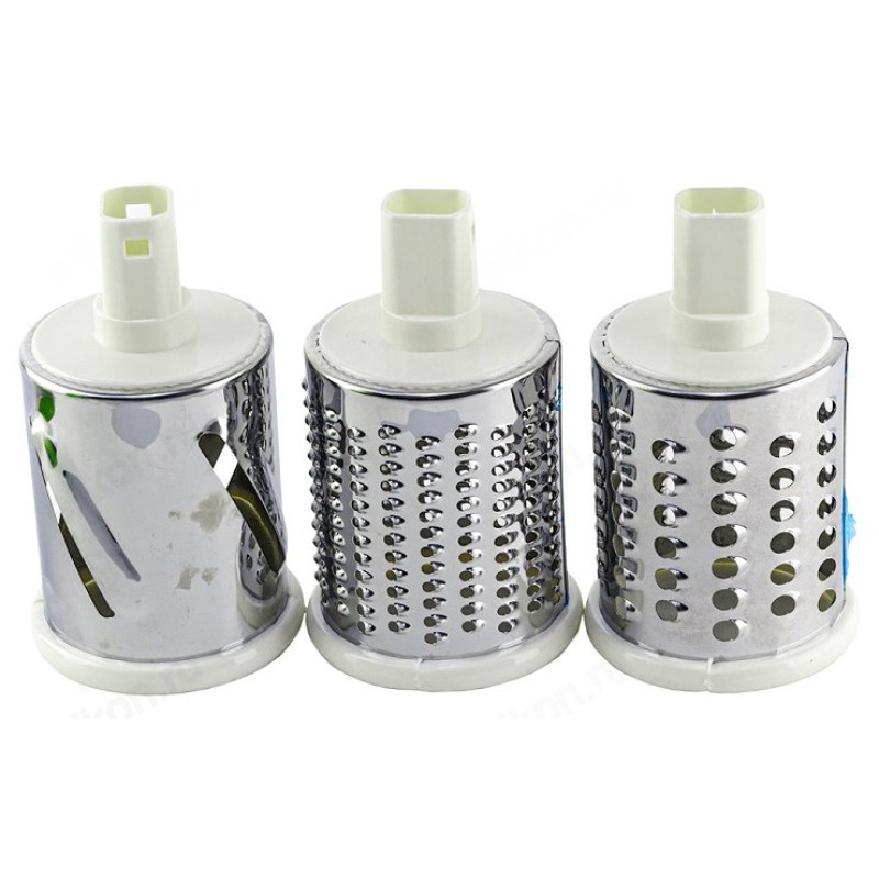 В комплект терки входят 3 лезвия для мелкого и крупного натирания/измельчения и нарезания ломтиками.