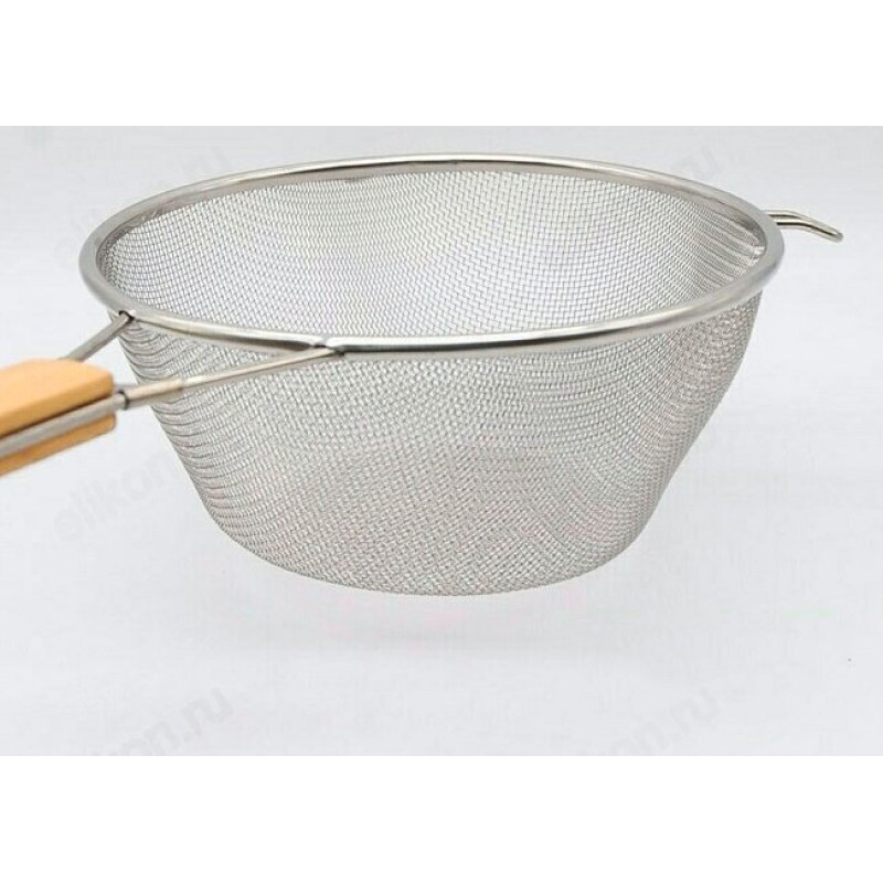 Сито дуршлаг из нержавеющей стали с деревянной ручкой.