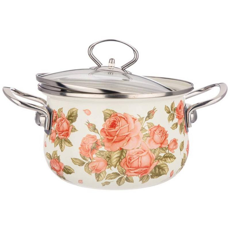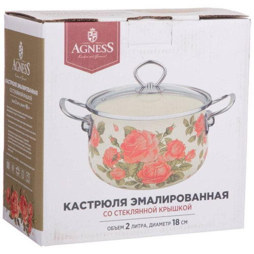 Кастрюля Agness 2.0л эмалированная со стекл. крышкой серия 'Корейская роза' ARTI-M 915-136