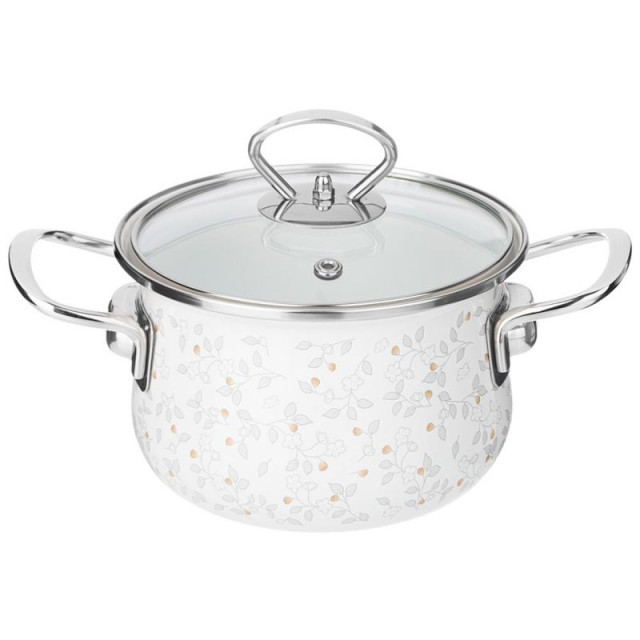 1.5л, d16см, эмалир.сталь, с декором, крышка стекло, ручки сталь, подходит для всех типов плит, включая индукцию