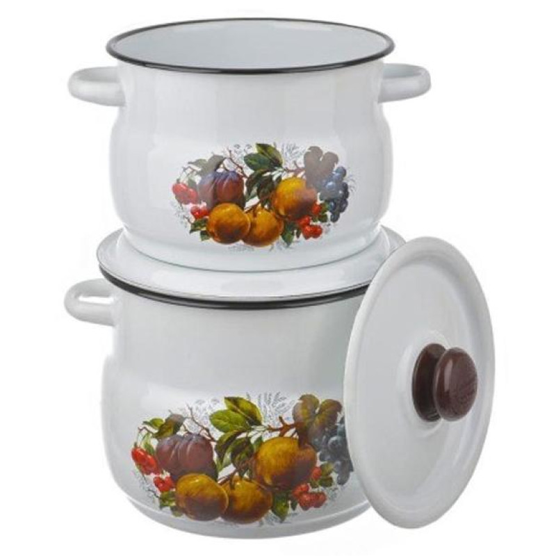 4 предмета, эмаль, кастрюли 3.0л и 5.5л, крышки с пластм. кнопкой